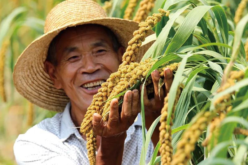 “十三五”時期,我國糧食年產(chǎn)量連續(xù)五年穩(wěn)定在1.3萬億斤以上,供給能力穩(wěn)步提升,國家糧食安全根基進(jìn)一步夯實。圖為2020年9月12日,河南許昌市襄城縣雙廟鄉(xiāng)趙莊村村民喜看即將收獲的谷子。人民圖片 牛書培/攝