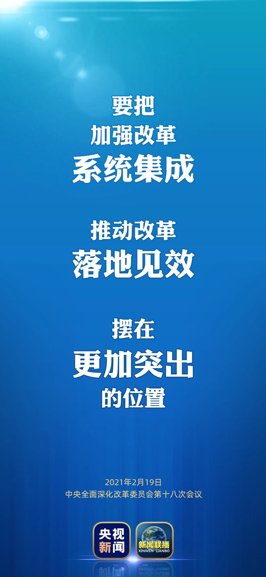 2月19日,中共中央總書記、國家主席、中央軍委主席、中央全面深化改革委員會主任習(xí)近平主持召開中央全面深化改革委員會第十八次會議并發(fā)表重要講話。他強(qiáng)調(diào),要完整、準(zhǔn)確、全面貫徹新發(fā)展理念,更加精準(zhǔn)地出臺改革方案,推動(dòng)改革向更深層次挺進(jìn)。來看梳理→