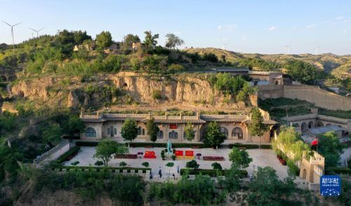 游人在陜西省榆林市米脂縣楊家溝革命舊址參觀(9月10日攝,無(wú)人機(jī)照片)。新華社記者 陶明 攝