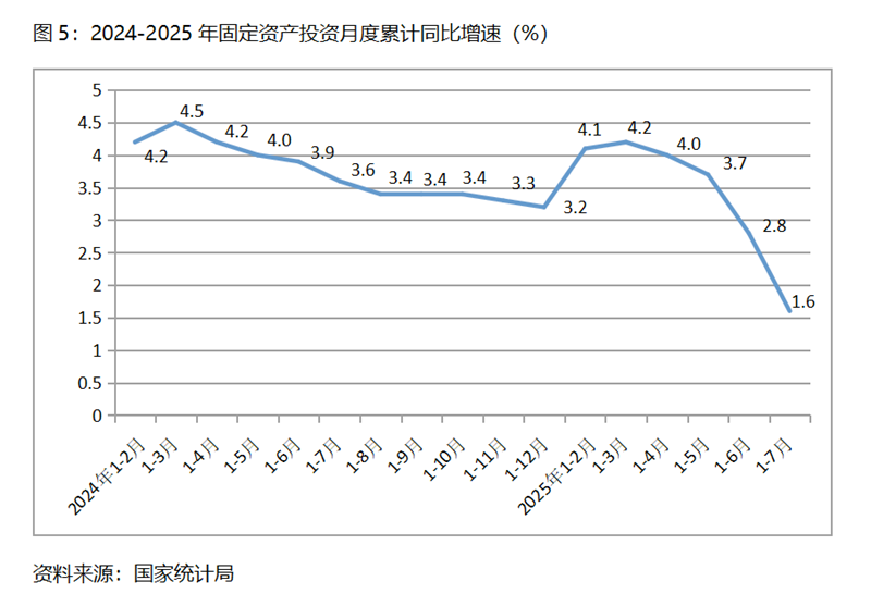 (三)投資增速持續(xù)回落。1-7月份,固定資產(chǎn)投資同比增長1.6%,比1-6月份增長2.8%回落了1.2個百分點(diǎn),1-6月份增速比1-5月份增長3.7%回落了0.9個百分點(diǎn),增速呈現(xiàn)出持續(xù)的回落。1-7月份國有控股投資同比增速比1-6月份回落1.5個百分點(diǎn);民間投資降幅擴(kuò)大了0.9個百分點(diǎn)。三次產(chǎn)業(yè)投資中,第一產(chǎn)業(yè)投資增速回落0.9個百分點(diǎn),第二產(chǎn)業(yè)投資增速回落1.3個百分點(diǎn),第三產(chǎn)業(yè)投資降幅擴(kuò)大1.2 百分點(diǎn)。固定資產(chǎn)投資增速較大幅度的持續(xù)回落,需引起宏觀調(diào)控的高度重視。